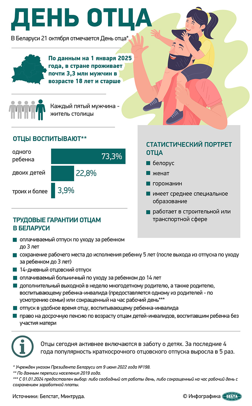 3,9% – троих и более.Трудовые гарантии отцам в Беларуси: