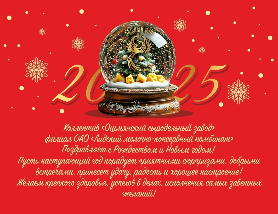 Новости НовостиС Новым годом!!! С Новым годом!!! 01.01.2025 Milk Fest 2025-Музыка и молоко в одном ритме17.10.2025Milk Fest 2025 – это яркое событие XI форума «Беларусь молочная» , которое объединяет молочную промышленность и ... Читать далее Неделя родительской любви: время для искренних слов13.10.2025Неделя родительской любви, приуроченная к Дню матери (14 октября) и Дню отца (21 октября), стала ... Читать далее Директором предприятия назначена Ирина Филиппова18.09.2025Ирина Владимировна родилась 5 сентября 1975 года в г. Потсдам в Германии. В 2000-м году ... Читать далее Международный успех12.09.2025“Ошмянский сыродельный завод” филиал ОАО “Лидский молочно-консервный комбинат” завоевал высокие награды на престижном дегустационном конкурсе ... Читать далее Молодежь Ошмянщины присоединилась к экологической акции11.09.2025В деревне Щепановичи прошла трудовая акция по благоустройству территории, организованная в рамках экологической инициативы. В ... Читать далее